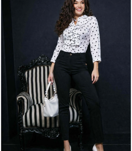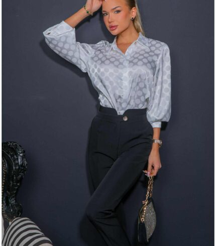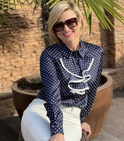 Tökéletes választás akár mindennapi, vagy alkalmi viseletre. A Mystic Day ruha anyaga 67% pamut és 33% poliészter. Sötétkék alapon fehér pöttyös , ez a kifinomult női blúz tökéletes választás a