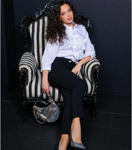 Tökéletes választás akár mindennapi, vagy alkalmi viseletre. A Mystic Day ruha anyaga 67% pamut és 33% poliészter. Nadrág + felső . Felső része : fodros ,magasnyakkal , ujjatlan . Nadrág