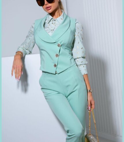 Tökéletes választás akár mindennapi, vagy alkalmi viseletre. A Mystic Day ruha anyaga 67% pamut és 33% poliészter. Mentazöld színű , vékony velúrbőr . A rövid fazonú zakó finoman hangsúlyozza a