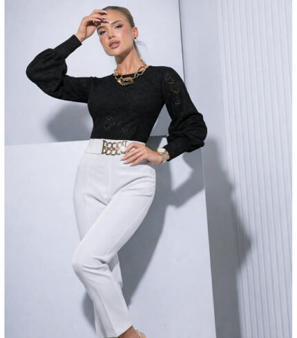 Tökéletes választás akár mindennapi, vagy alkalmi viseletre. A Mystic Day ruha anyaga 67% pamut és 33% poliészter. Fekete , egyenes vonalú ruha , muszlin ujjú geometriai mitával , gallérral .