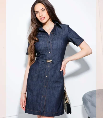 Tökéletes választás akár mindennapi, vagy alkalmi viseletre. A Mystic Day ruha anyaga 67% pamut és 33% poliészter. Farmer színű és anyag , V kivágással , galléros , rövid ujjal ,