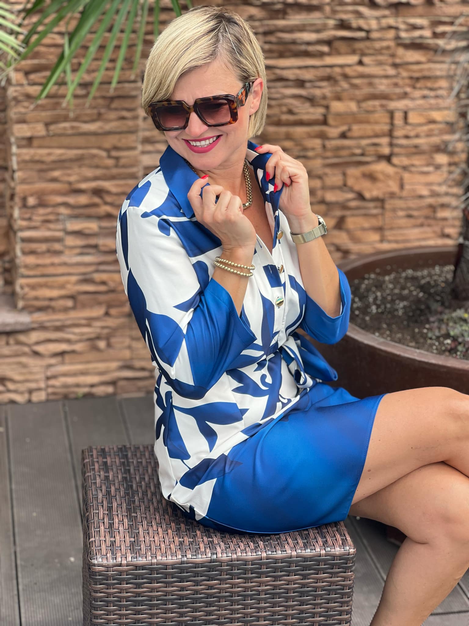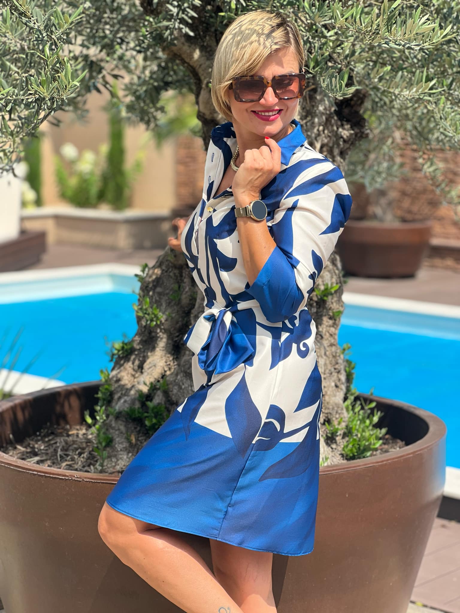 Tökéletes választás akár mindennapi, vagy alkalmi viseletre. A Mystic Day ruha anyaga 67% pamut és 33% poliészter. Kék-ekrü mintázattal , galléros 5 gombbal , 3/4-es ujjal , nem rugalmas anyag . Saját anyagából öv tartozéka . Rendeld házhoz Mystic Day Kecskemét webáruházunkból. Rendelésnél a megjegyzés rovatban érdemes mell-derék-csipő bőséget írni, hogy a megfelelő méretet tudjuk küldeni.