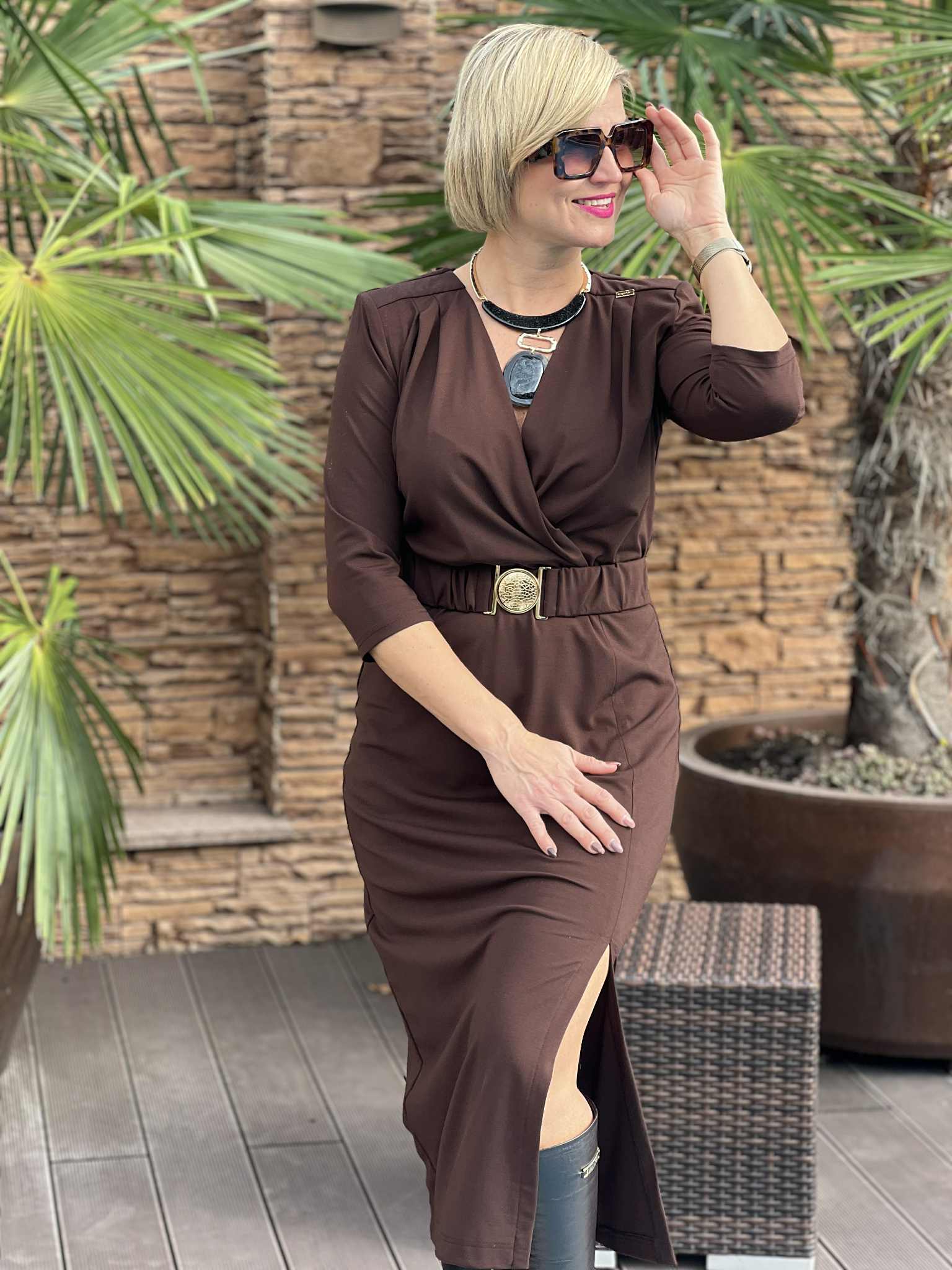 Tökéletes választás akár mindennapi, vagy alkalmi viseletre. A Mystic Day ruha anyaga 67% pamut és 33% poliészter. Csokibarna, eleje átlapolt , gumis derékkal , V kivágású , szoknya része egyenes , térd alatti , egyik oldala sliccelt . Saját anyagából gumis öv tartozéka .Rendeld házhoz Mystic Day Kecskemét webáruházunkból. Rendelésnél a megjegyzés rovatban érdemes mell-derék-csípő bőséget írni, hogy a megfelelő méretet tudjuk küldeni.