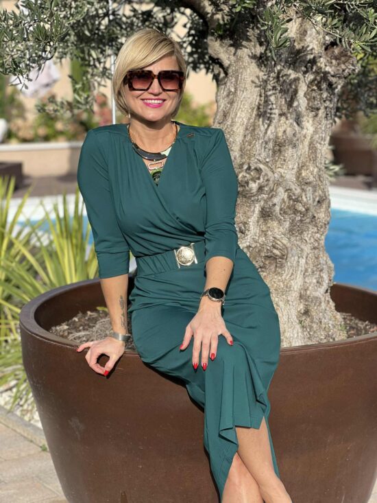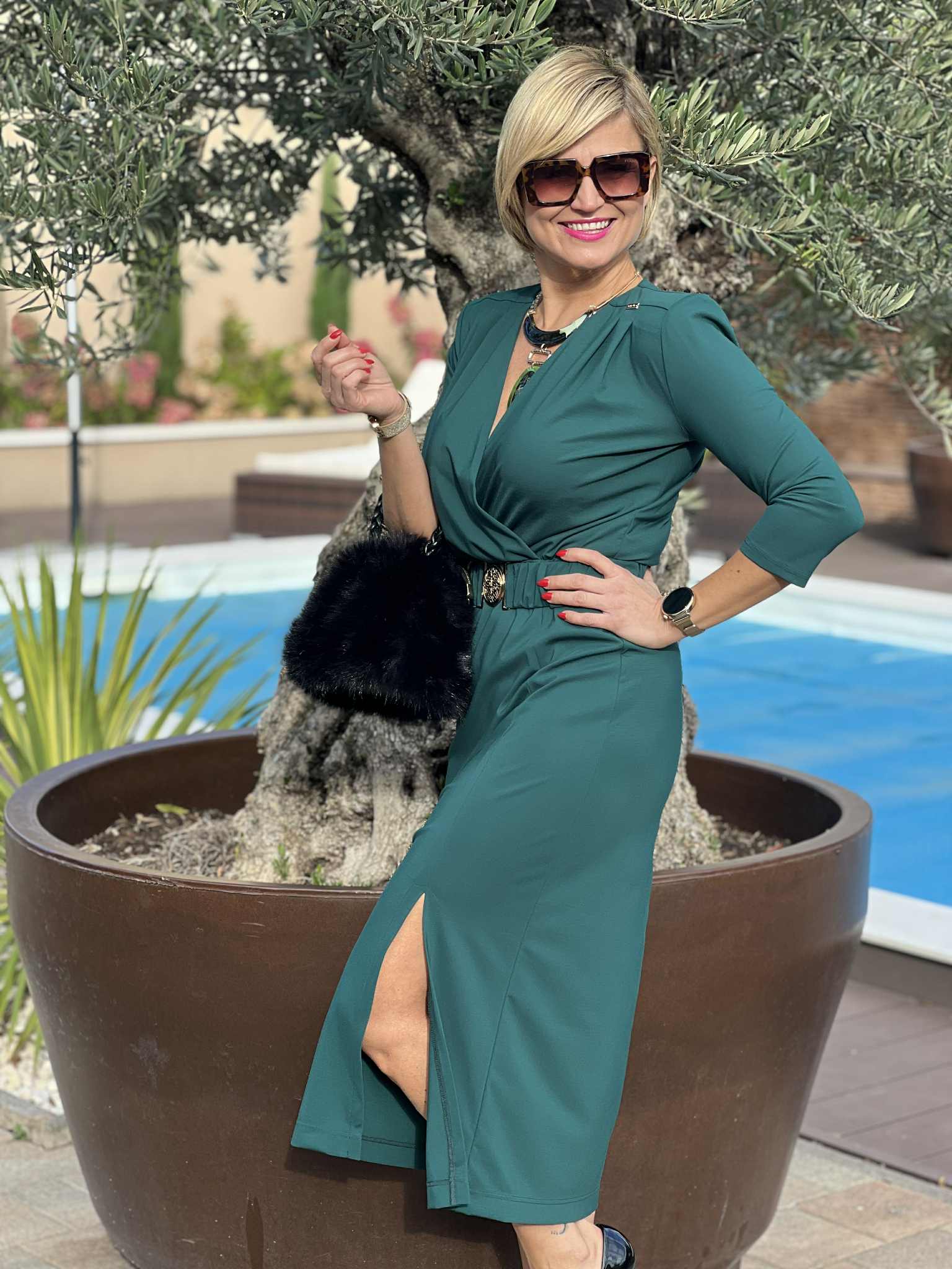 Tökéletes választás akár mindennapi, vagy alkalmi viseletre. A Mystic Day ruha anyaga 67% pamut és 33% poliészter. Smaragdzöld , eleje átlapolt , gumis derékkal , V kivágású , szoknya része egyenes , térd alatti , egyik oldala sliccelt . Saját anyagából gumis öv tartozéka Rendeld házhoz Mystic Day Kecskemét webáruházunkból. Rendelésnél a megjegyzés rovatban érdemes mell-derék-csípő bőséget írni, hogy a megfelelő méretet tudjuk küldeni.