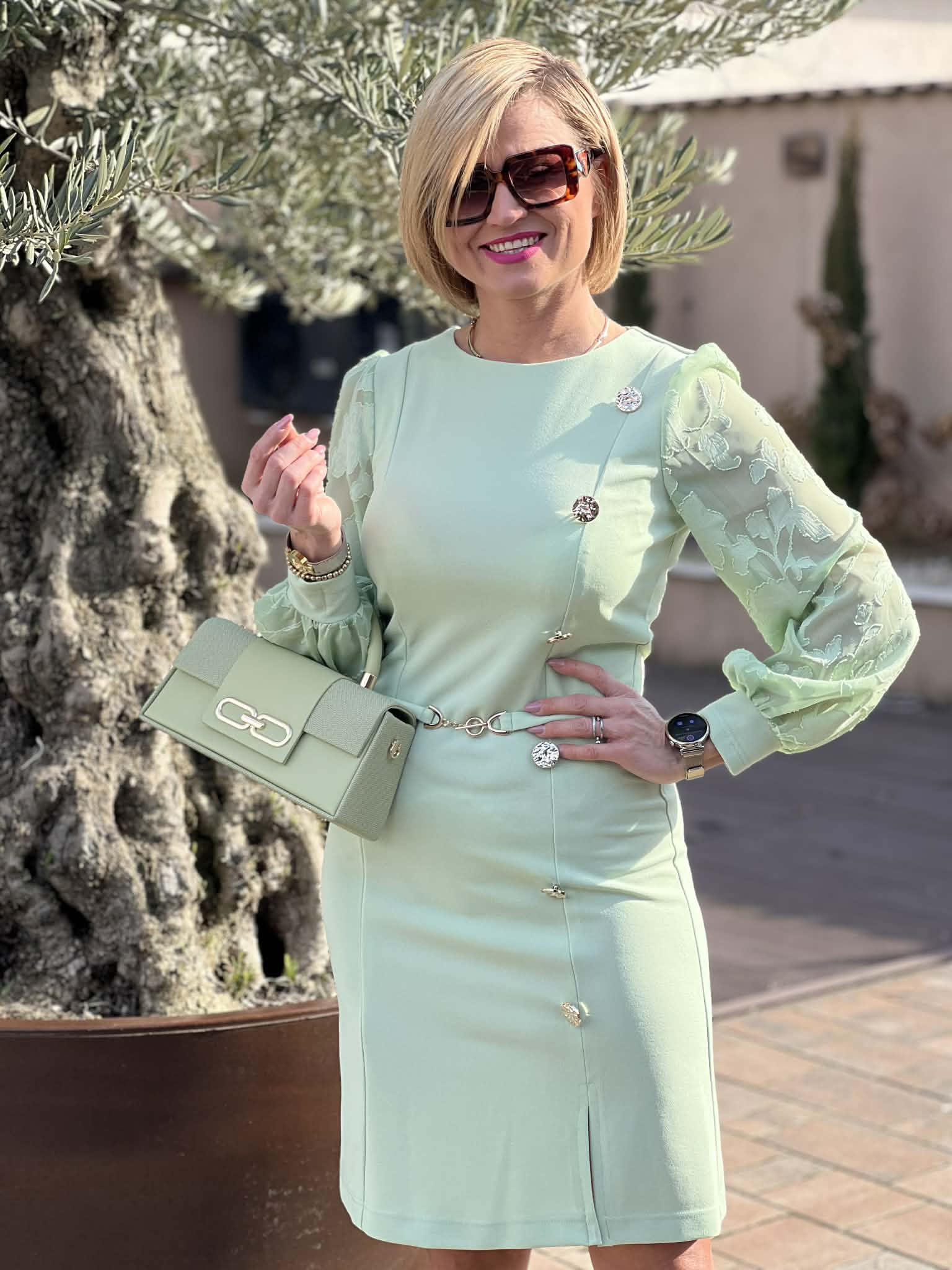 Tökéletes választás akár mindennapi, vagy alkalmi viseletre. A Mystic Day ruha anyaga 67% pamut és 33% poliészter. Drapp színű , testhezálló , hosszú, bő csipkés muszlin ujjú , kerek nyakú ,arany gombokkal díszítve , hátán cipzáras . Rugalmas anyag , vékony gumis öv tartozéka a ruhának . Rendeld házhoz Mystic Day Kecskemét webáruházunkból. Rendelésnél a megjegyzés rovatban érdemes mell-derék-csípő bőséget írni, hogy a megfelelő méretet tudjuk küldeni.