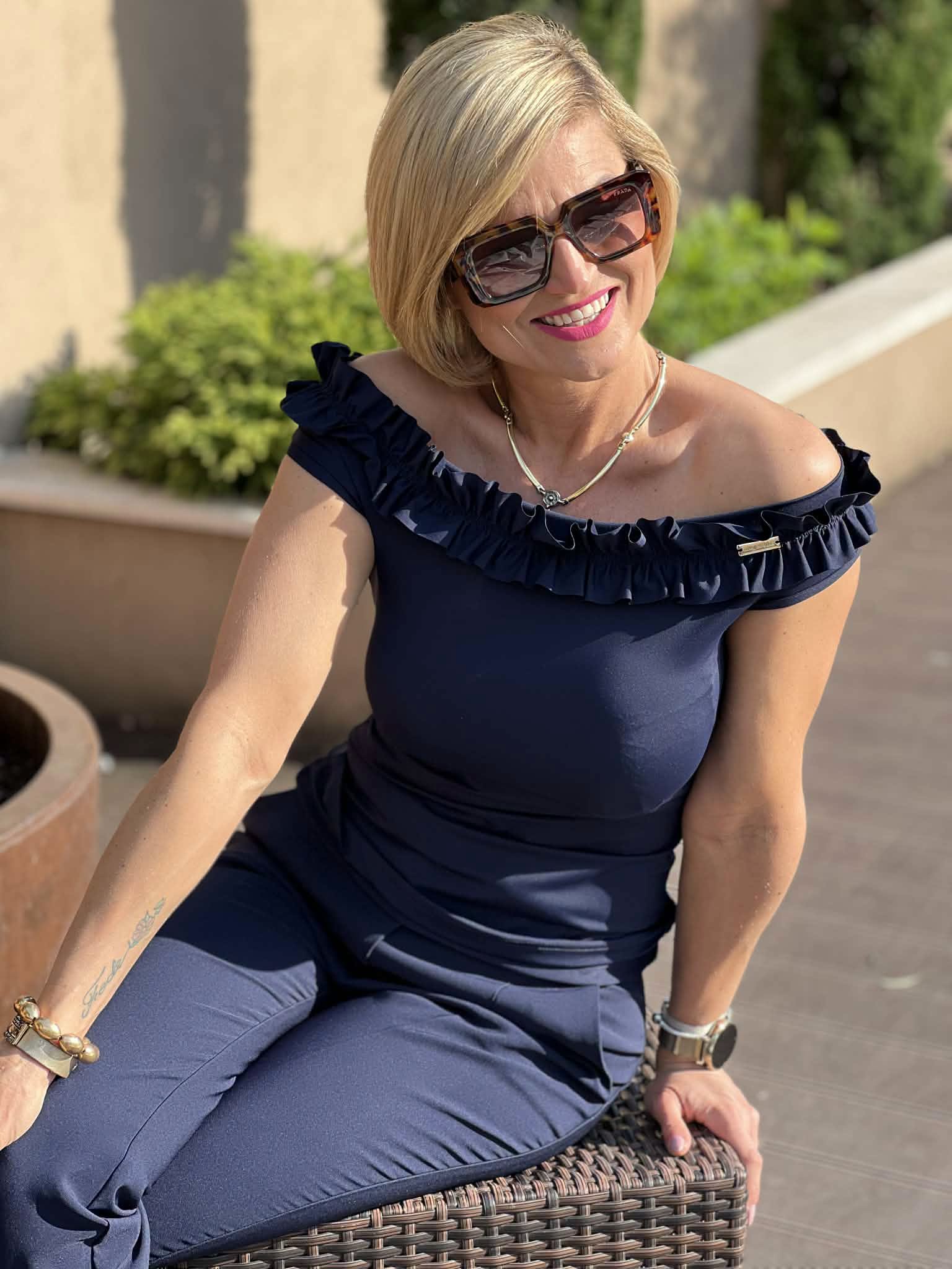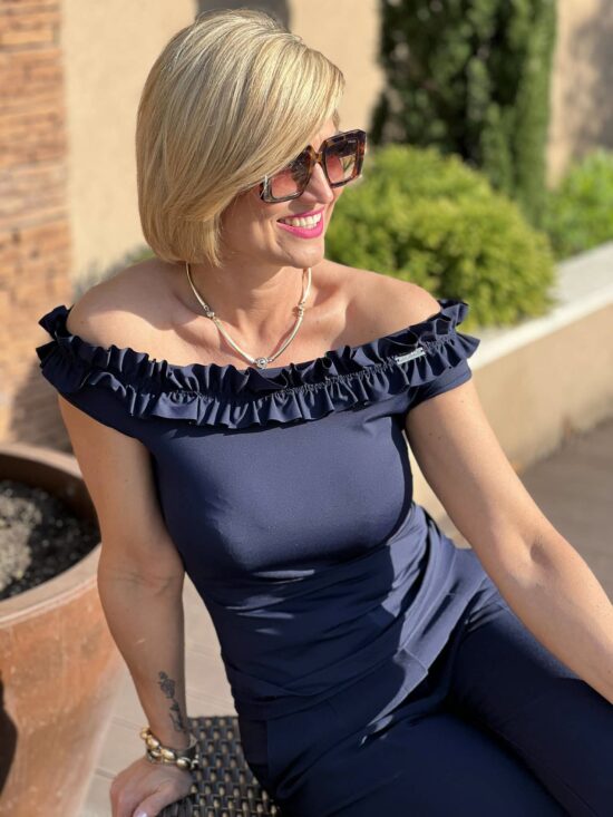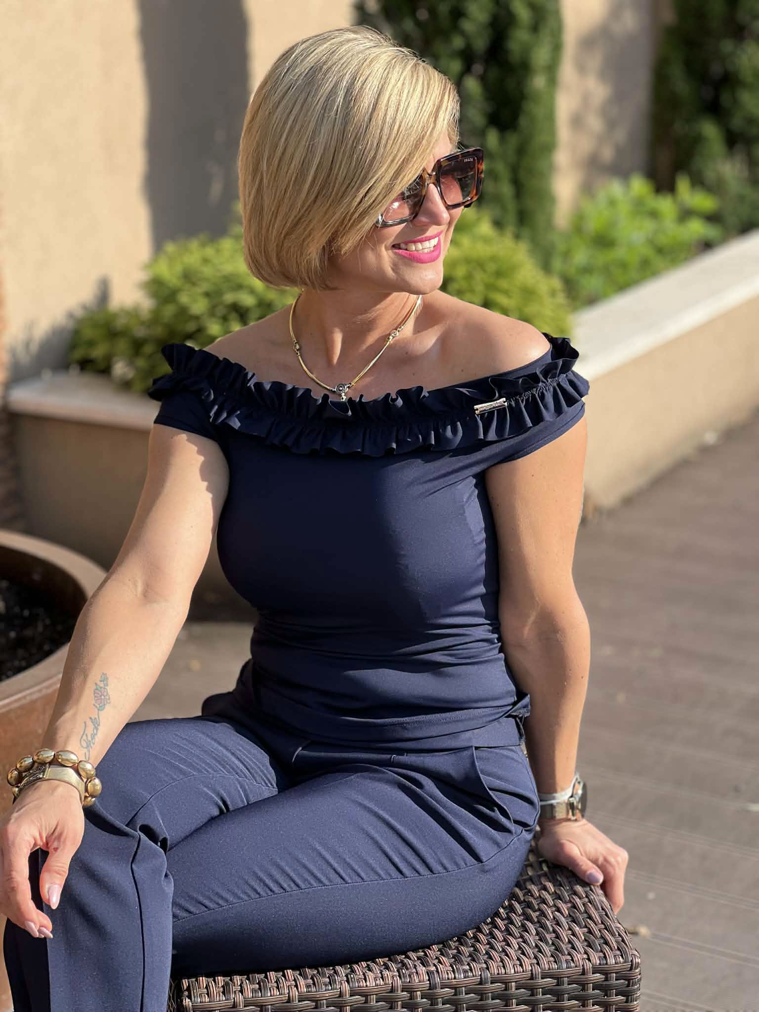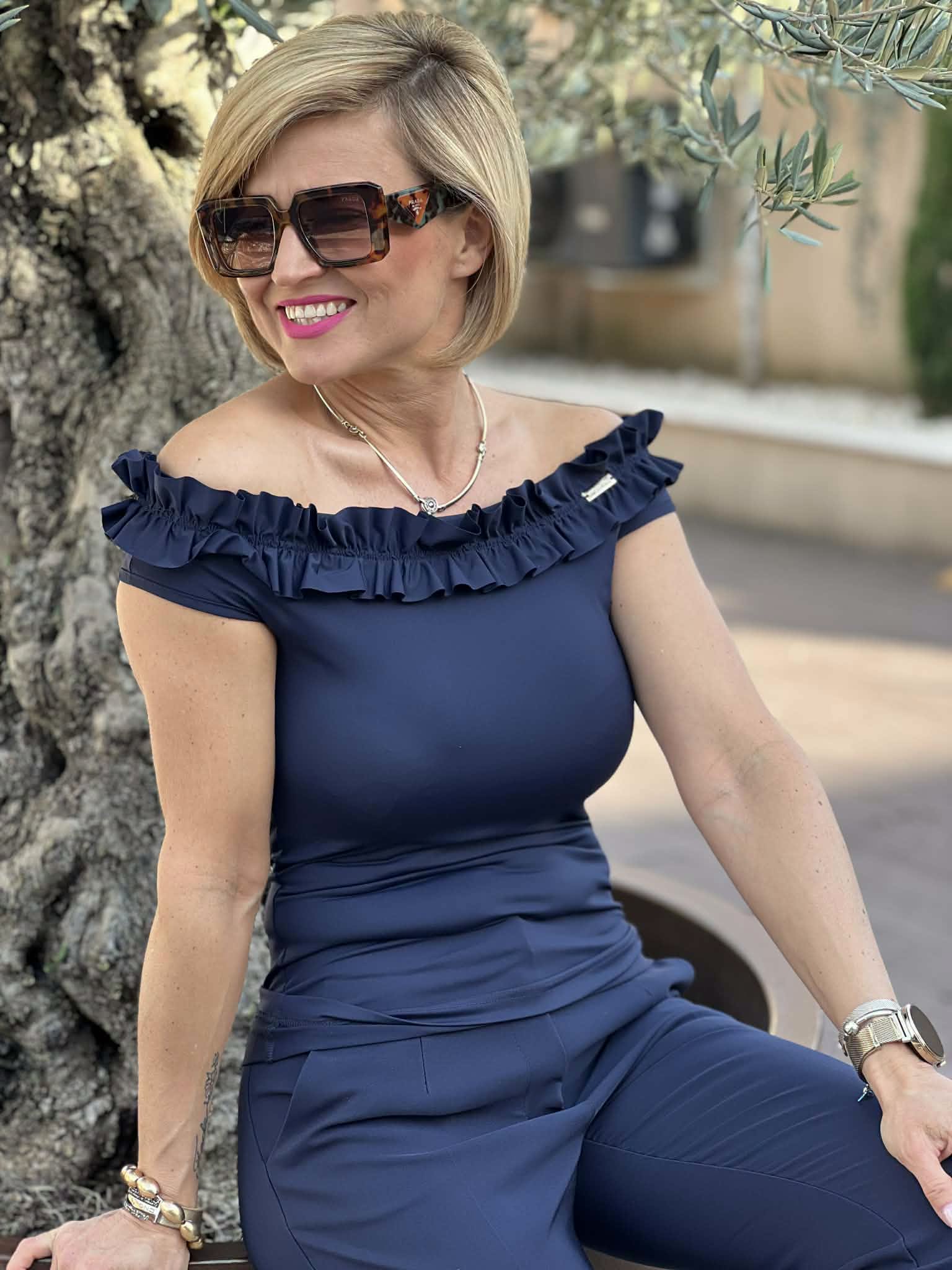 Mystic Day Fodros vállú ujjatlan felső / sötétkék / – Mystic Day Kecskemét