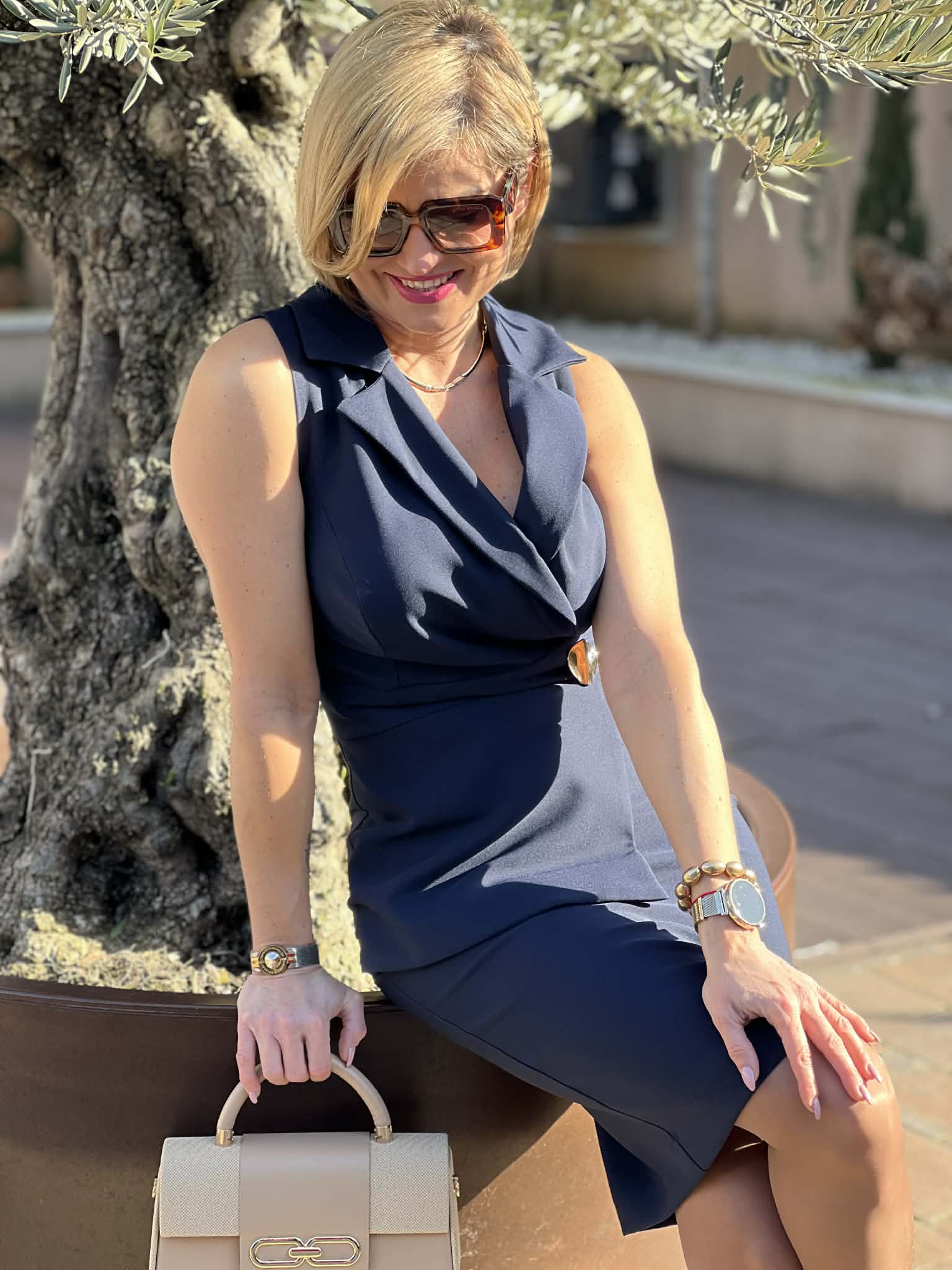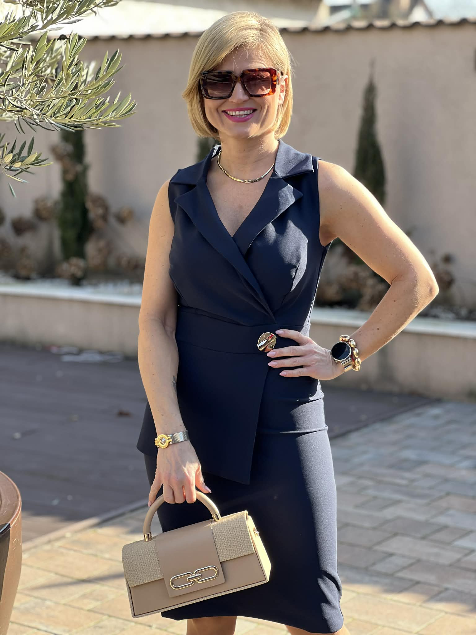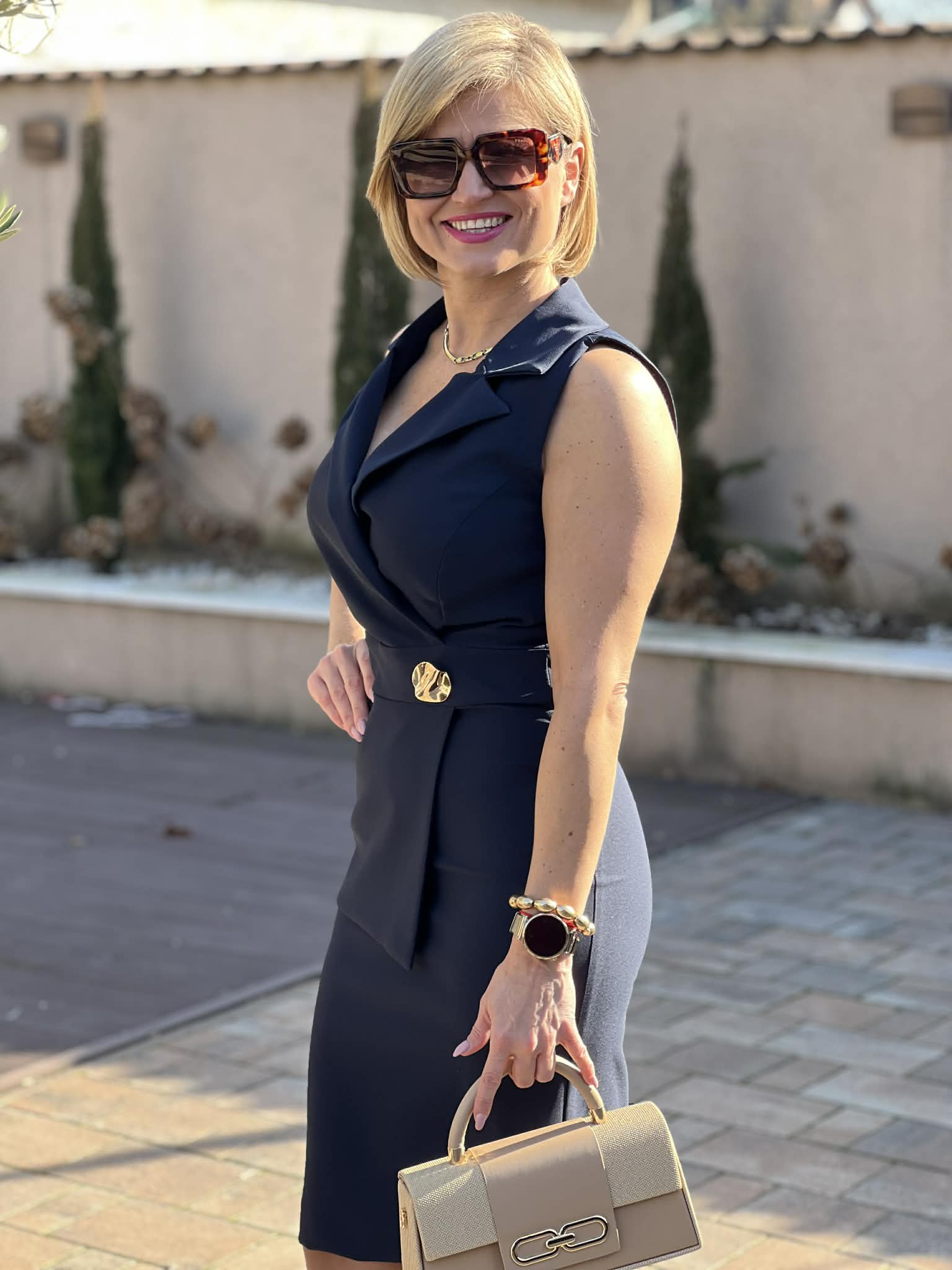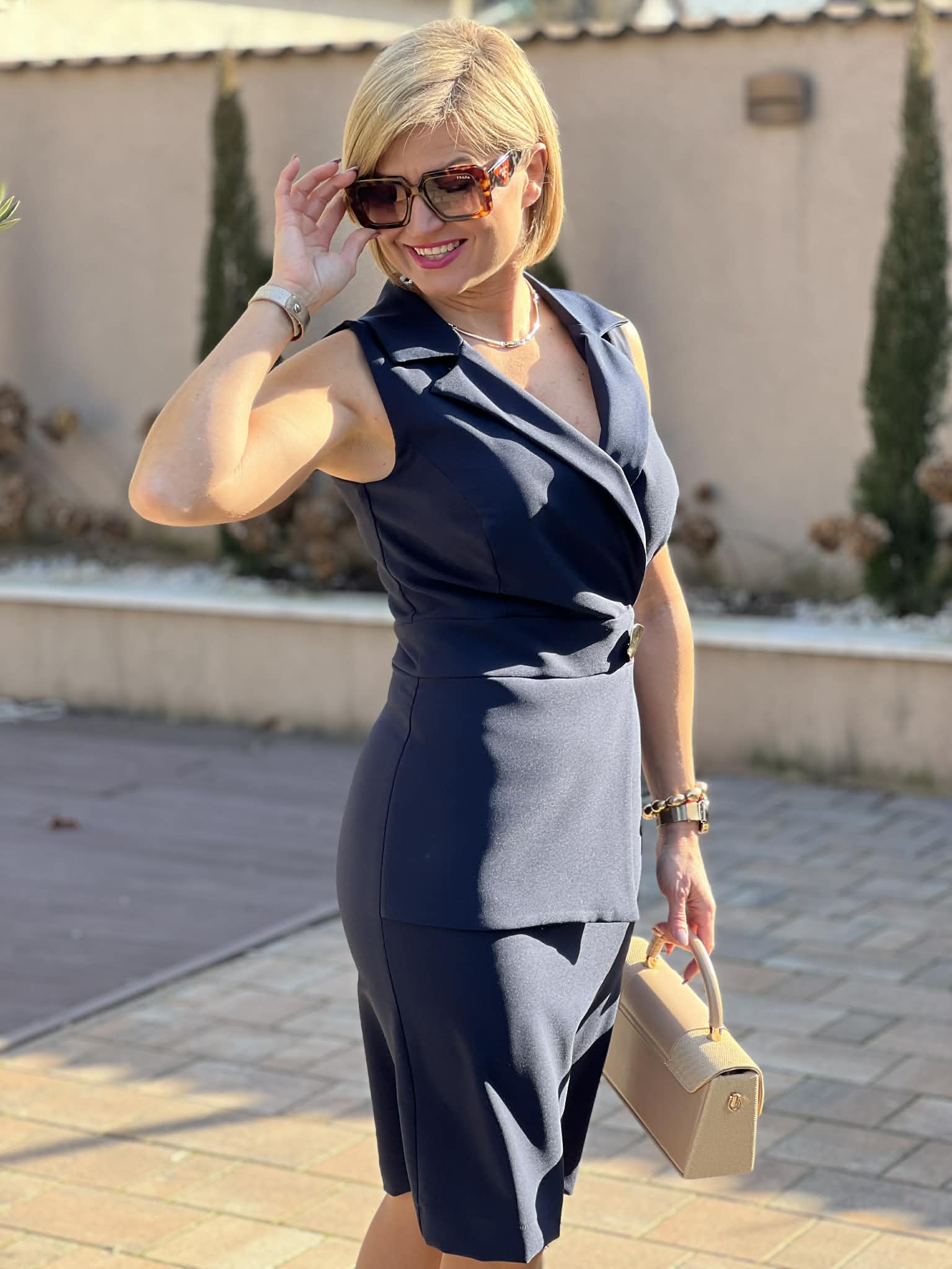 Tökéletes választás akár mindennapi, vagy alkalmi viseletre. A Mystic Day ruha anyaga 67% pamut és 33% poliészter.  Sötétkék színű , ujjatlan kialakítás , V nyakú, galléros felsőrész , karcsúsított , ceruza fazon , díszes gombos övrész , térdig érő hossz , elegáns , alkalmi és üzleti viseletre is ideális . Rendeld házhoz Mystic Day Kecskemét webáruházunkból. Rendelésnél a megjegyzés rovatban érdemes mell-derék-csípő bőséget írni, hogy a megfelelő méretet tudjuk küldeni.