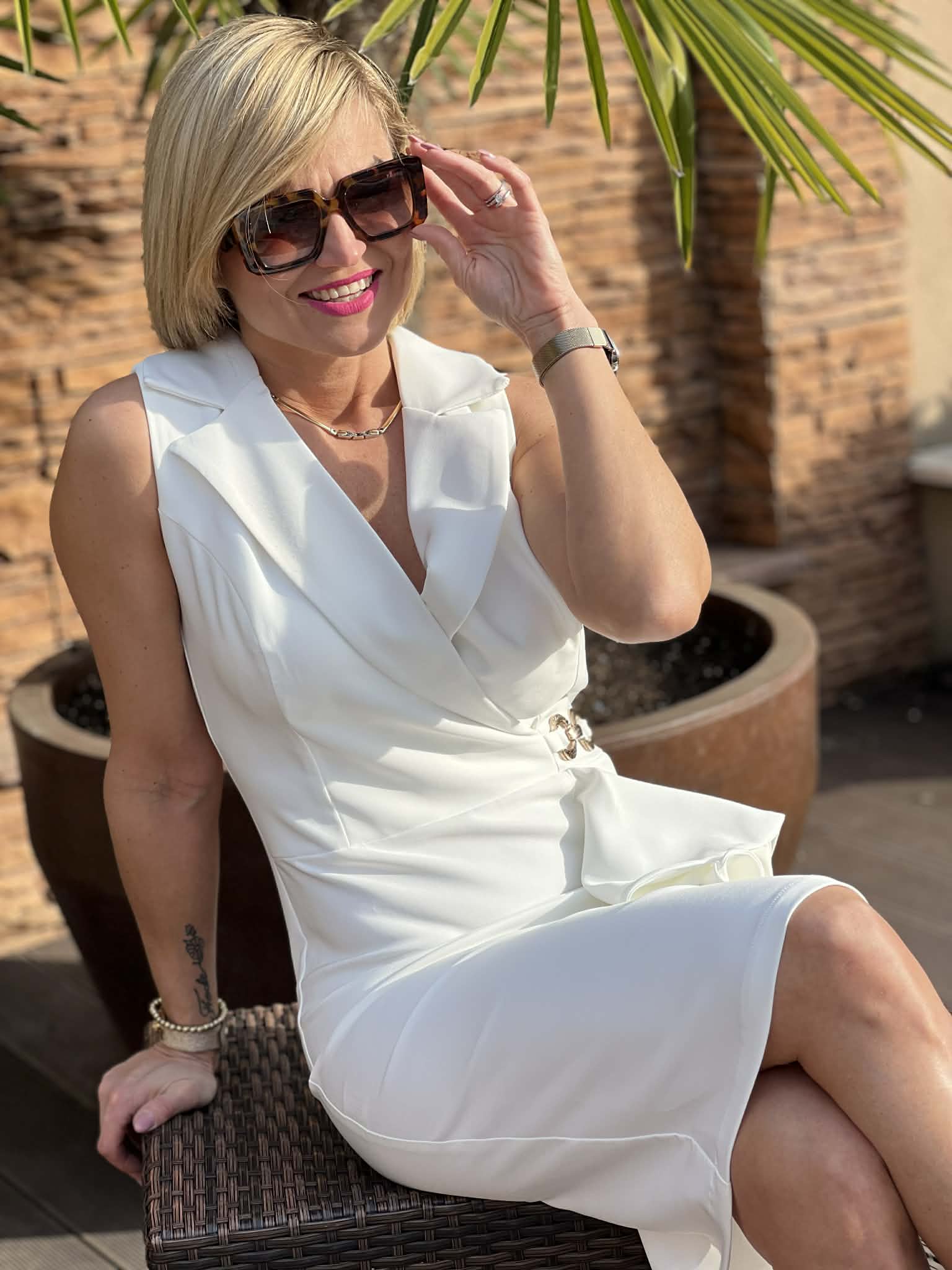 Tökéletes választás akár mindennapi, vagy alkalmi viseletre. A Mystic Day ruha anyaga 67% pamut és 33% poliészter. Színe törtfehér , V kivágott galléros , ujjatlan , egyenes fazon , derekát aranyszínű csatt díszíti , bal oldalt szoknyarészen enyhe fodor található ami megadja a ruha különlegességét . Kimondottan elegáns , alkalmi fazon . Rendeld házhoz Mystic Day Kecskemét webáruházunkból. Rendelésnél a megjegyzés rovatban érdemes mell-derék-csípő bőséget írni, hogy a megfelelő méretet tudjuk küldeni.