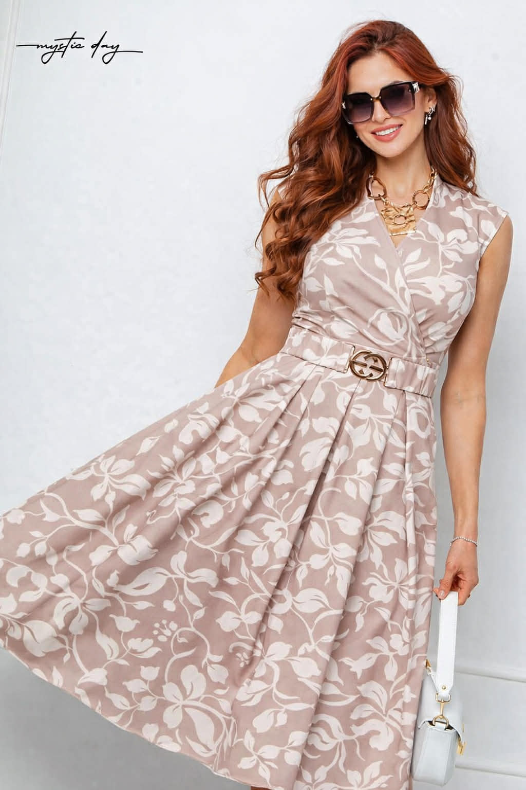 Tökéletes választás akár mindennapi, vagy alkalmi viseletre. A Mystic Day ruha anyaga 67% pamut és 33% poliészter. Bézs alapon fehér virág minta , átlapolt mellrész , ujjatlan , térd alá érő , loknis , saját anyagból öv tartozéka .Rendeld házhoz Mystic Day Kecskemét webáruházunkból. Rendelésnél a megjegyzés rovatban érdemes mell-derék-csípő bőséget írni, hogy a megfelelő méretet tudjuk küldeni.