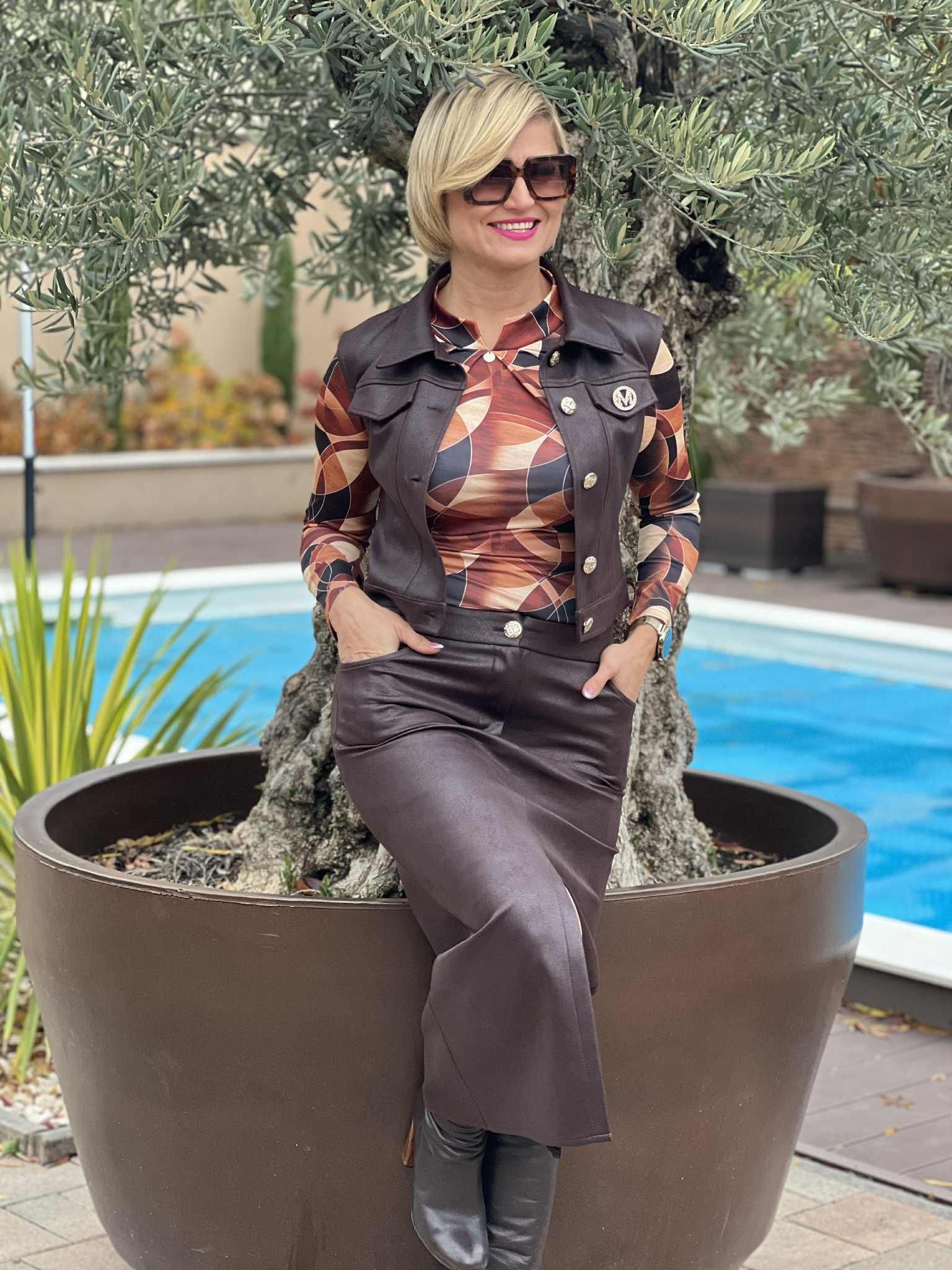 Tökéletes választás akár mindennapi, vagy alkalmi viseletre. A Mystic Day ruha anyaga 67% pamut és 33% poliészter. Csokibarna színű , egyenes fazonú szoknya elől sliccelt , koptatott velúrbőr , térd alá érő , rugalmas . Rendeld házhoz Mystic Day Kecskemét webáruházunkból. Rendelésnél a megjegyzés rovatban érdemes mell-derék-csípő bőséget írni, hogy a megfelelő méretet tudjuk küldeni.