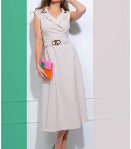 Tökéletes választás akár mindennapi, vagy alkalmi viseletre. A Mystic Day ruha anyaga 67% pamut és 33% poliészter. Bézs színű , V kivágással , átlapolt mellrész , galléros , vállcsúcstakaró ujjal